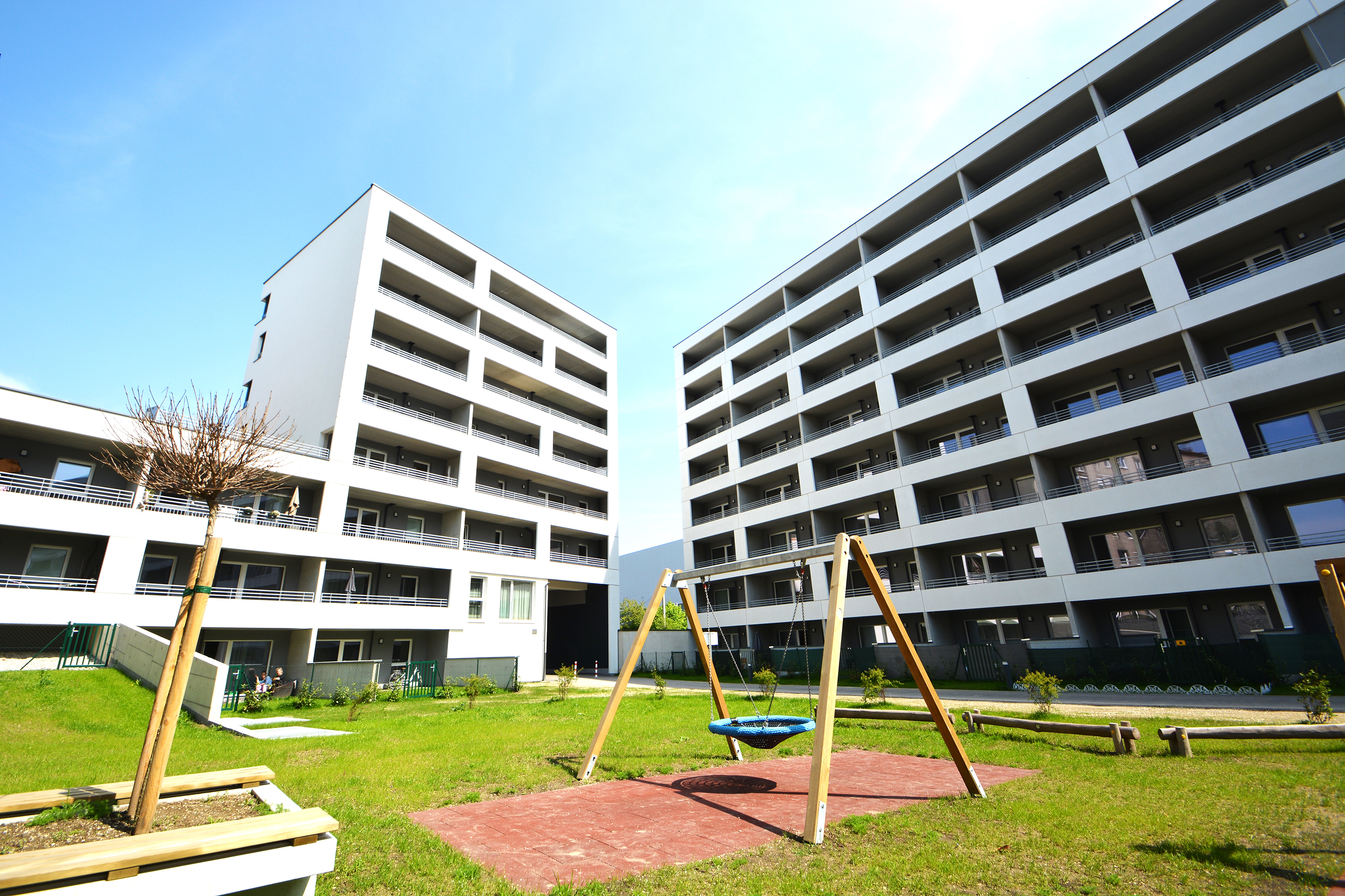 Die Wohnräume im Hochhaus sind äußerst vielfältig gestaltet und bieten eine breite Palette an Größen, um den unterschiedlichen Bedürfnissen der Mieter gerecht zu werden. Egal, ob Singles, Paare oder Familien – alle finden hier ein Zuhause, das ihren Erwartungen entspricht. Die Bewohner genießen zudem viel Außenraum, sei es in Form von Balkonen, Terrassen oder gemeinschaftlichen Dachgärten. Das grüne Dach dient als zusätzlicher gemeinschaftlicher Raum , und trägt zur Nachhaltigkeit des Projekts bei. Hier können die Bewohner sich treffen, entspannen und die Aussicht auf die Stadt und den Fluss genießen. Es ist ein Ort, der Gemeinschaft fördert und gleichzeitig ökologisch wertvoll ist.