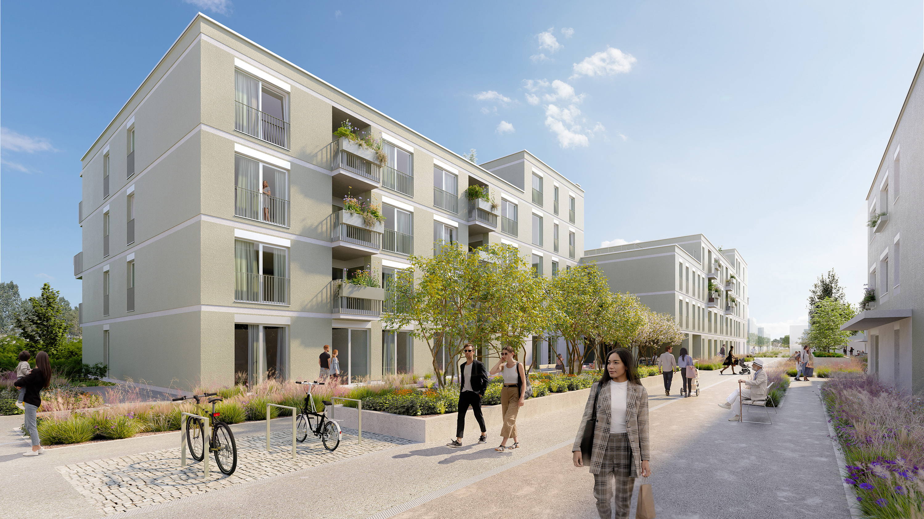 Das Wohnprojekt ist urban, familienfreundlich und naturnah konzipiert: Fast alle Einheiten verfügen über private Freiflächen wie Balkone, Terrassen oder Eigengärten. Neben diesen großzügig gestalteten privaten Freiräumen wurde auch großer Wert auf kollektive Begegnungsorte gelegt. Eine großzügige Dachterrasse bietet Raum zum Spielen und Gärtnern, mehrere Spielplätze im Quartier fördern Begegnung und Zusammenhalt.