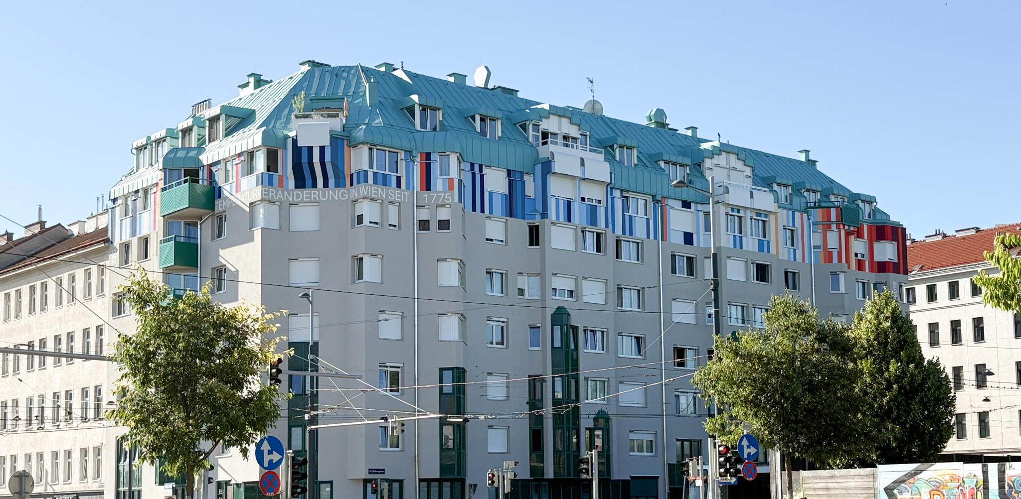 Die Fassade des ÖSW-Wohnhauses in der Absberggasse 1–3 in Wien-Favoriten ist seit Kurzem um ein auffälliges Kunstwerk reicher. „Vorsicht, heiß!“ zeigt in eindrucksvoller Weise die Temperaturentwicklung in Wien. Die künstlerische Gestaltung auf der obersten Gebäudeetage versteht sich als sichtbarer Beitrag zur öffentlichen Diskussion über Klimawandel und Stadterwärmung – und als Symbol für die Verantwortung von Architektur und Wohnbau gegenüber Umwelt und Gesellschaft.