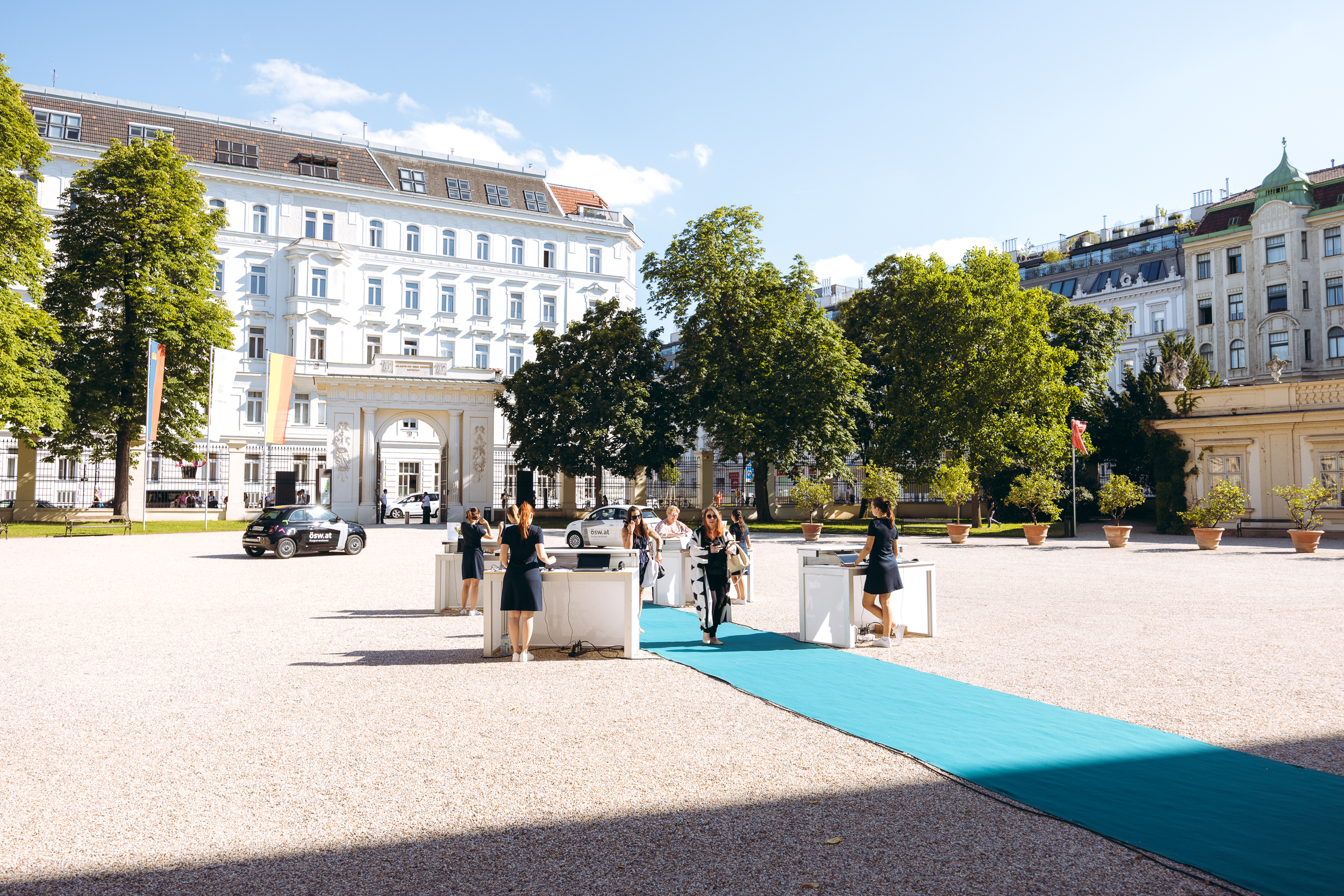 Die Feier im eindrucksvollen Wiener Gartenpalais Liechtenstein bot den idealen Rahmen für diesen besonderen Anlass. Bei bestem Wetter wurde im weitläufigen Garten des Palais der Abend eröffnet: Das Ambiente bot eine perfekte Mischung aus entspannten Begegnungen und feierlichen Momenten für die rund 900 geladenen Gäste.
