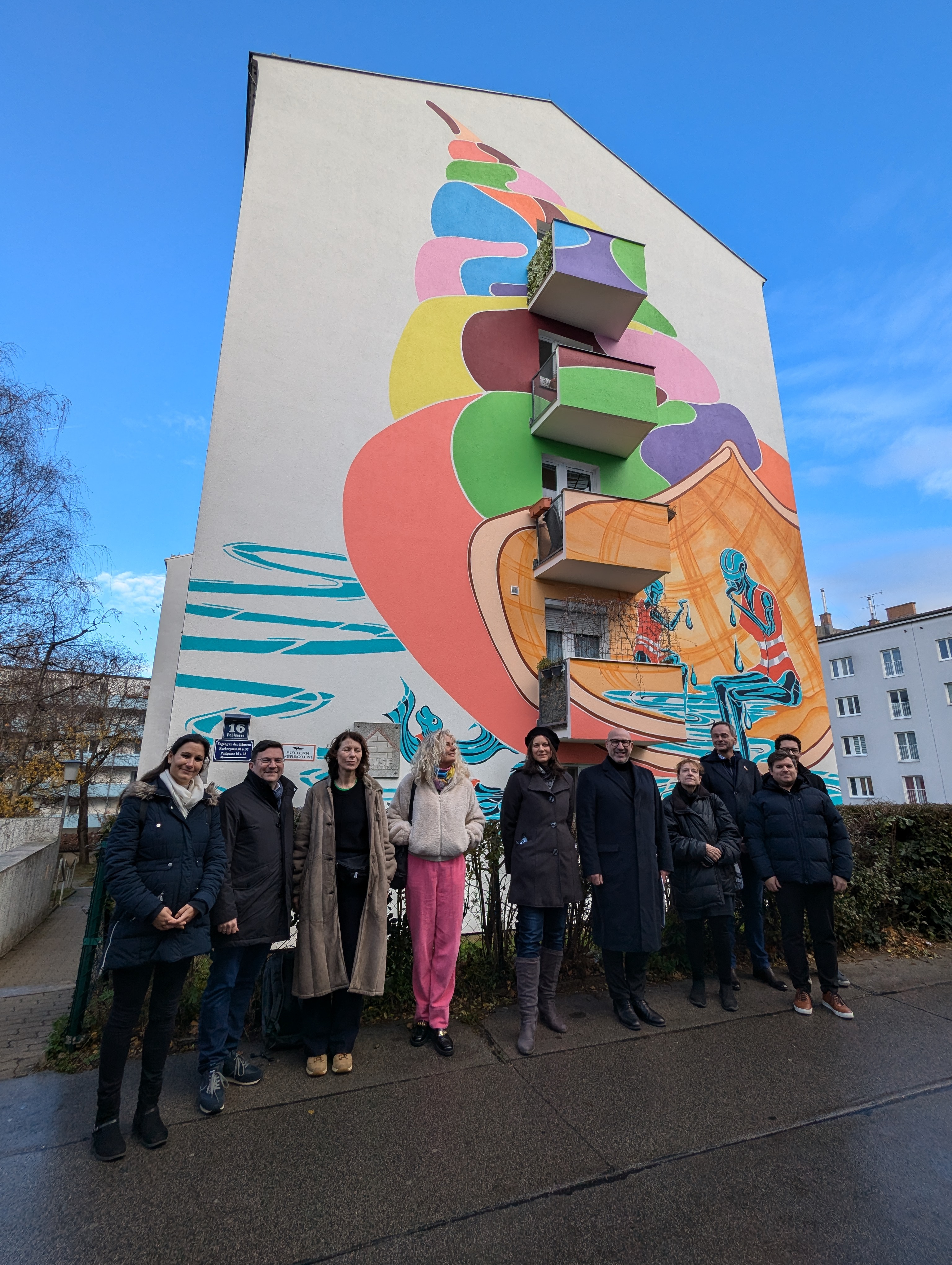 Insgesamt acht Wohnbauten stellt der ÖSW Konzern renommierten Künstler:innen zur Gestaltung zur Verfügung. Die neue Fassadenkunst wird dabei mehr als visuelle Bereicherung verstanden: Sie steht für eine künstlerische Auseinandersetzung mit gesellschaftspolitischen Themen und soll einen wertvollen Beitrag zur lebendigen Kultur und Identität des jeweiligen Stadtteils leisten. Mit der erfolgreichen Fertigstellung des ersten Kunstwerks in der Pohlgasse in 1120 Wien wurde vor kurzem ein bedeutender Meilenstein erreicht. Die positive Resonanz der Bewohner:innen und die spürbare Aufwertung des Wohnviertels bestätigen den Erfolg des Projekts.