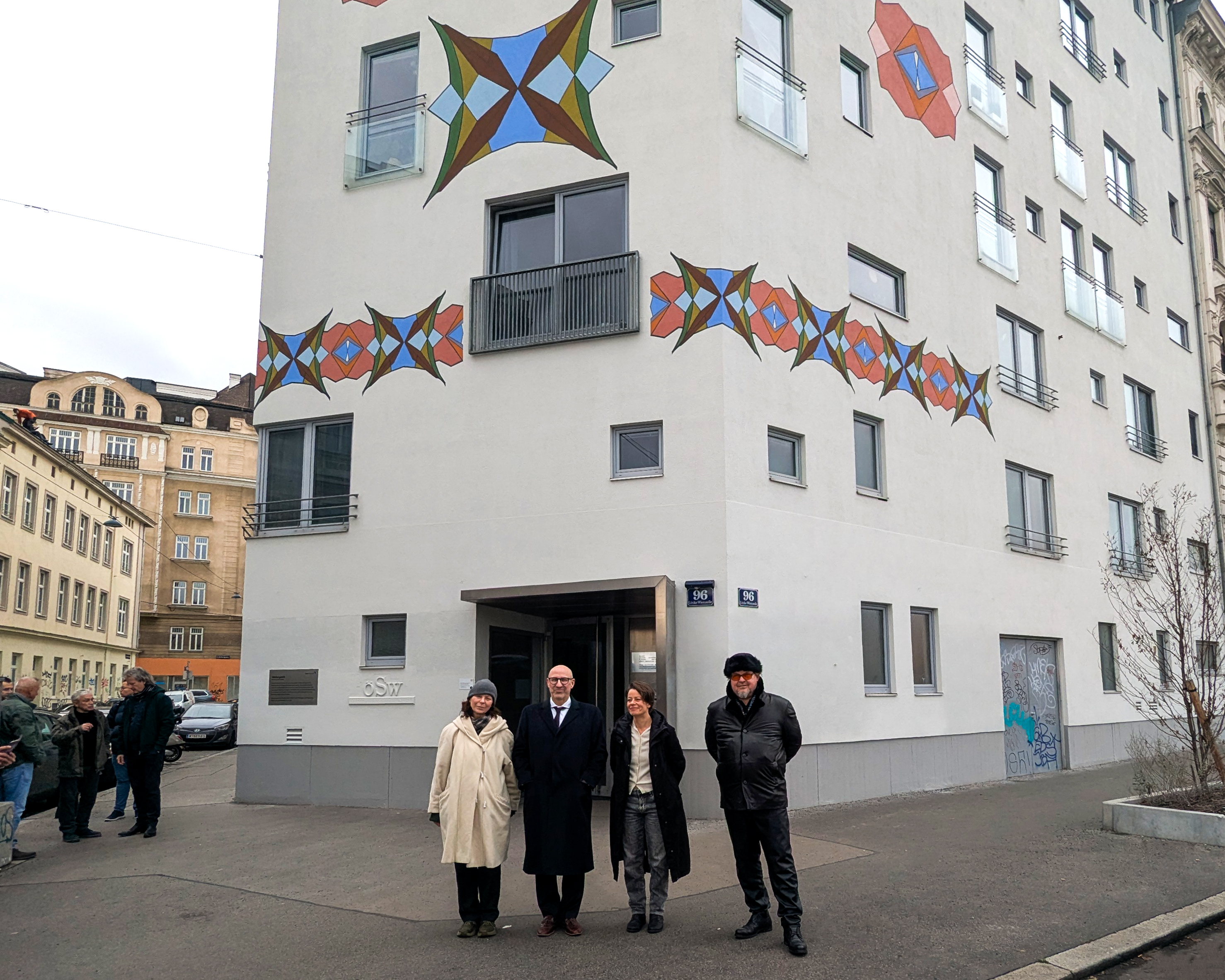 Der ÖSW Konzern setzt mit einer Fassadenkunst-Reihe ein sichtbares Zeichen für gesellschaftlich relevante Themen: Insgesamt acht Wohnbauten in Wien werden von Künstler:innen gestaltet, um den urbanen Raum nicht nur optisch zu bereichern, sondern auch inhaltlich zu beleben. Die Fassadenkunstwerke sollen als künstlerische Auseinandersetzung mit gesellschaftspolitischen Themen verstanden werden und zur kulturellen Vielfalt des jeweiligen Stadtteils beitragen. Mit dem Kunstwerk „Vektorgotik“ am ÖSW Wohnhaus in der Esterházyhasse 2 in 1060 Wien wurde nun das zweite Projekt dieser Reihe in Kooperation mit Kunst im öffentlichen Raum Wien (KÖR Wien) realisiert.